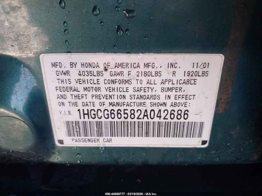 • 1HGCG66582A042686