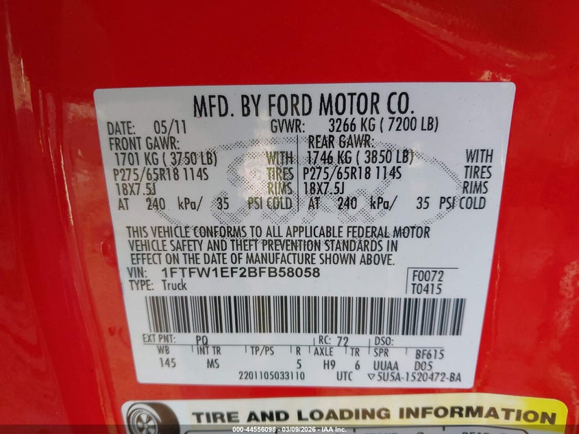 2011 FORD F-150 FX4/KING RANCH/LARIAT/PLATINUM/XL/XLT for Sale in Rancho Cordova, CA