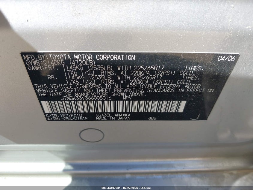 • JTMBK33V366005016