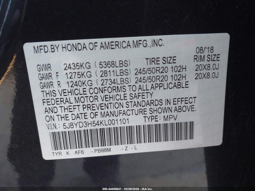 • 5J8YD3H54KL001101