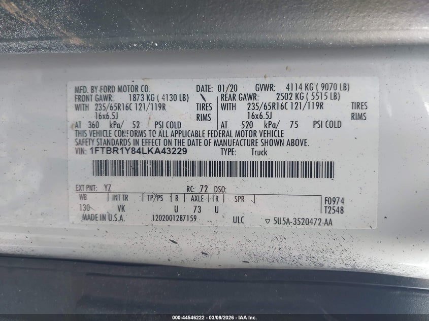 • 1FTBR1Y84LKA43229