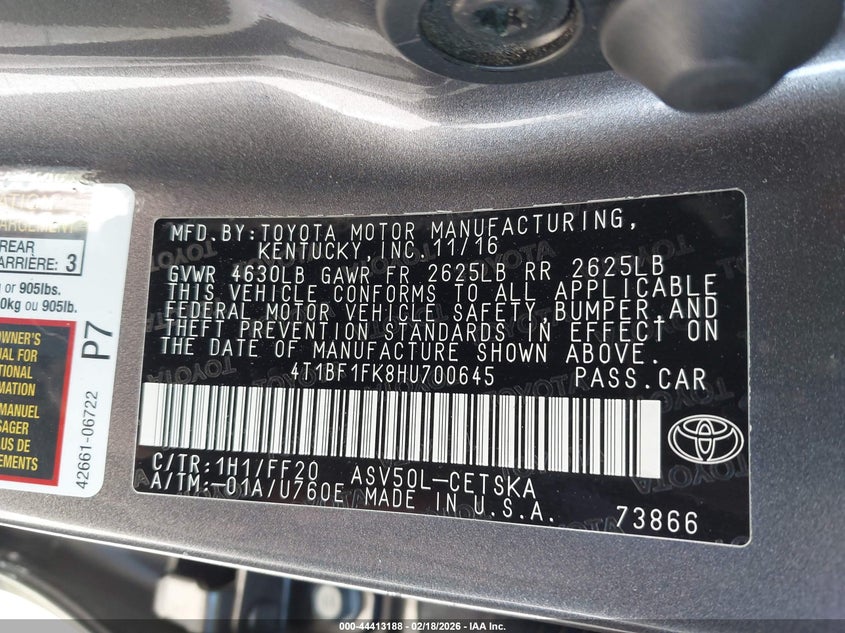 • 4T1BF1FK8HU700645