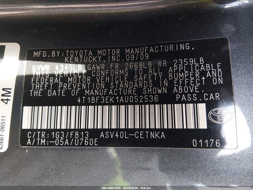 • 4T1BF3EK1AU052536