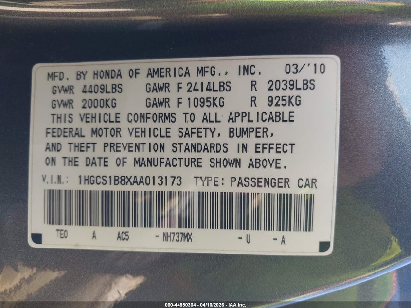 • 1HGCS1B8XAA013173