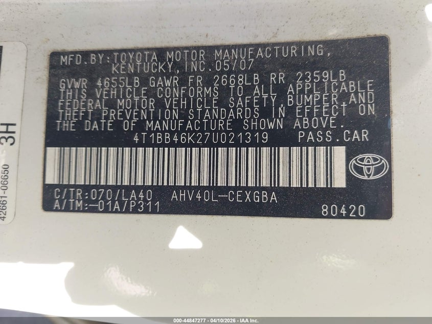 • 4T1BB46K27U021319