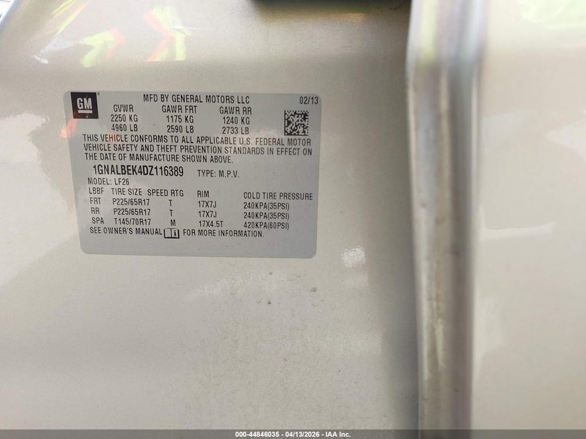 • 1GNALBEK4DZ116389