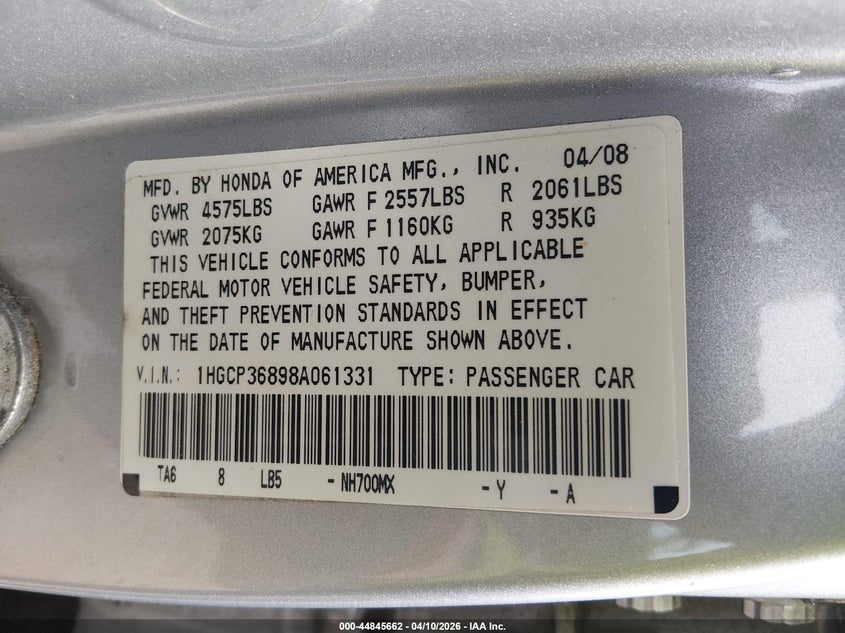 • 1HGCP36898A061331