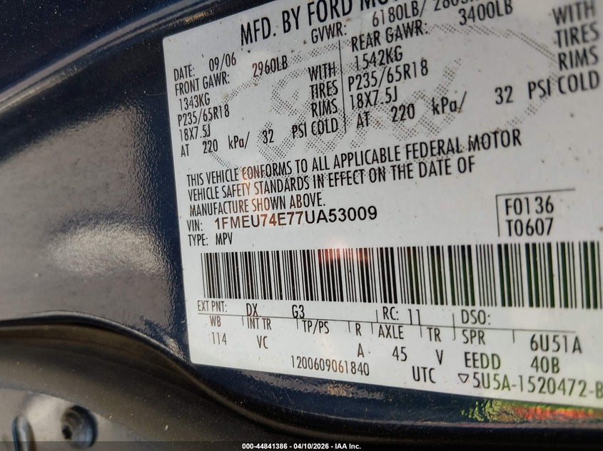 • 1FMEU74E77UA53009