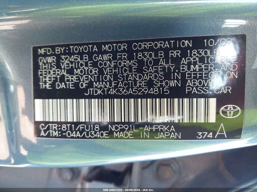• JTDKT4K36A5294815