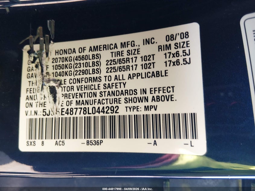 • 5J6RE48778L044292