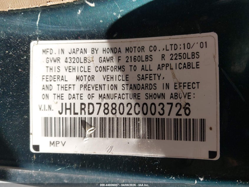• JHLRD78802C003726
