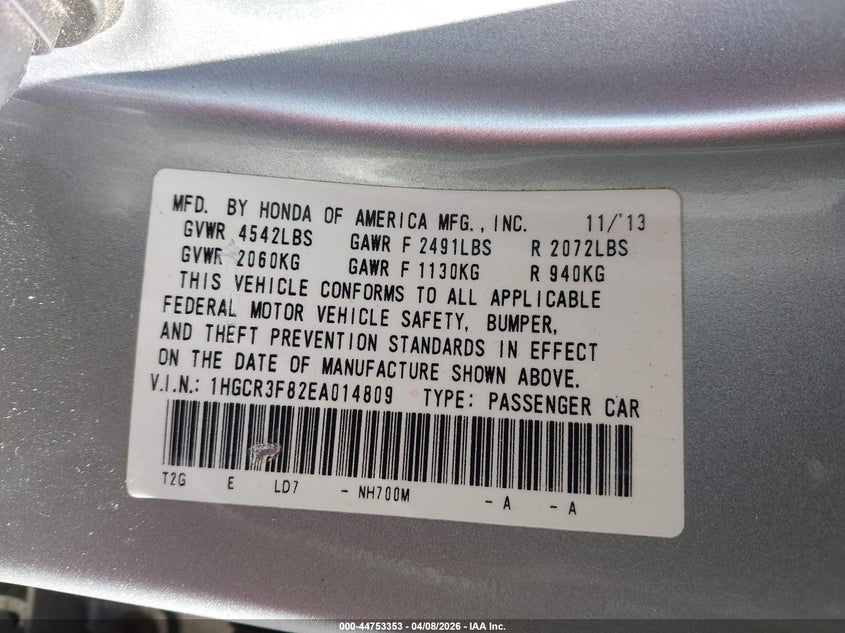 • 1HGCR3F82EA014809