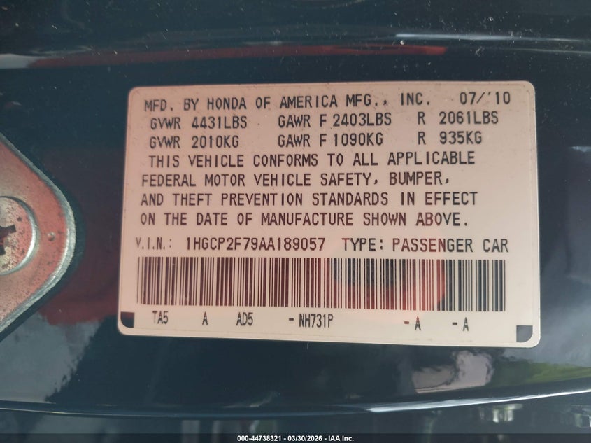 • 1HGCP2F79AA189057