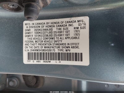 • 2HKRM3H58GH526175