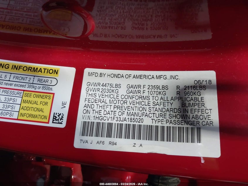• 1HGCV1F33JA185020