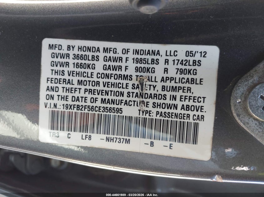 2012 HONDA CIVIC LX for Sale in Winder, GA