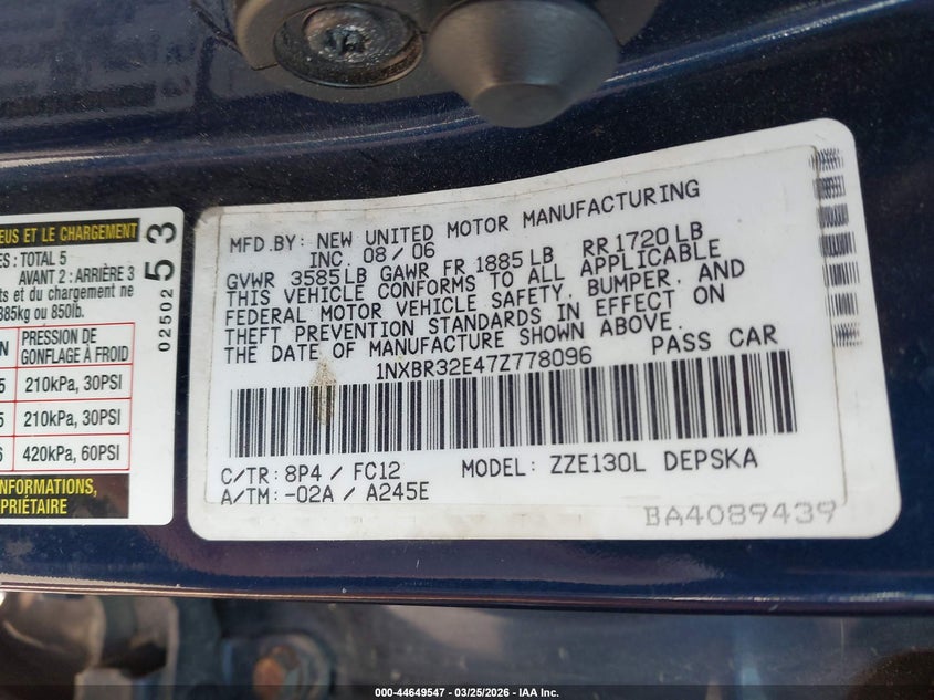 2007 TOYOTA COROLLA S for Sale in West Chester, OH