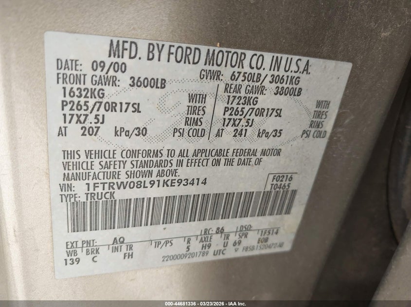 • 1FTRW08L91KE93414