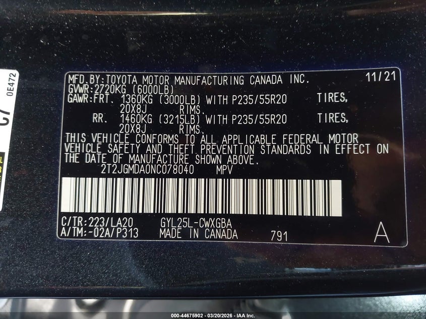 • 2T2JGMDA0NC078040