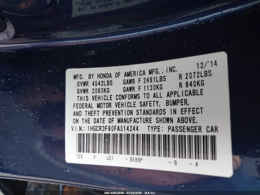 • 1HGCR3F80FA014244