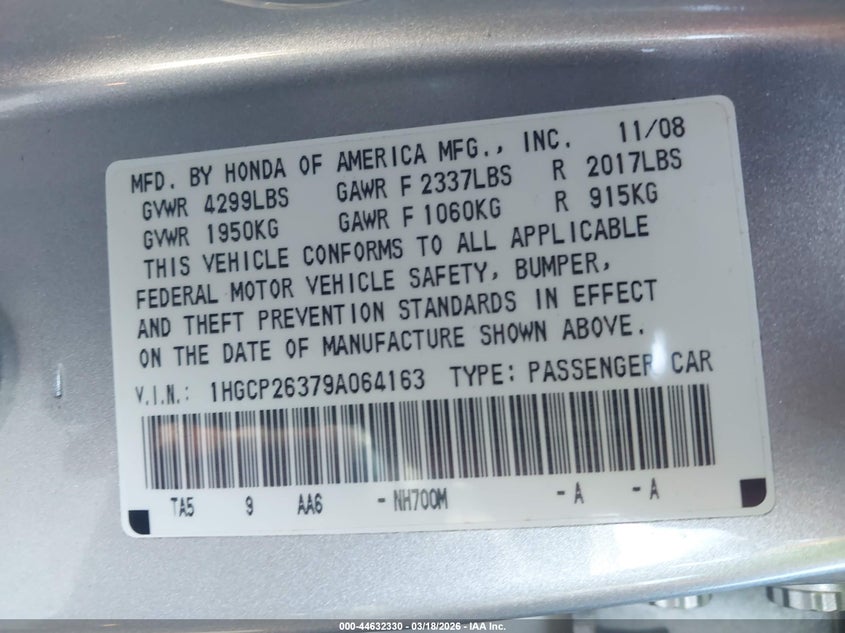 • 1HGCP26379A064163