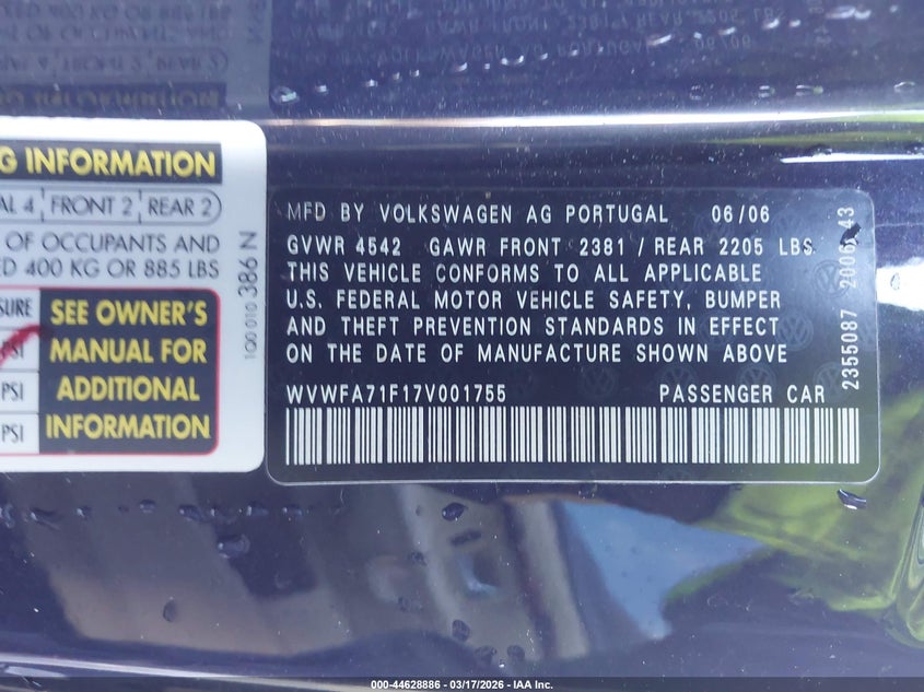 • WVWFA71F17V001755
