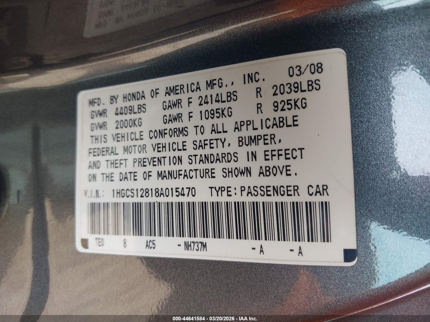 • 1HGCS12818A015470