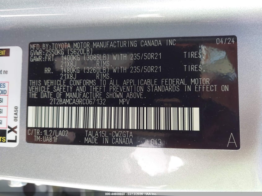 • 2T2BAMCA9RC067132