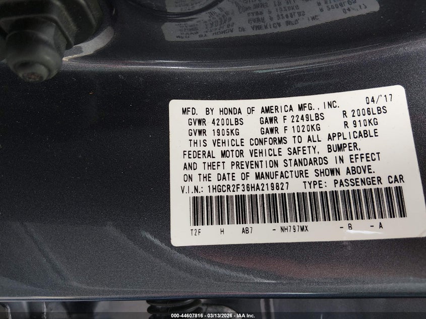 • 1HGCR2F36HA219827