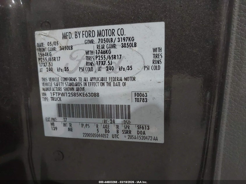 • 1FTPW12585KE63088
