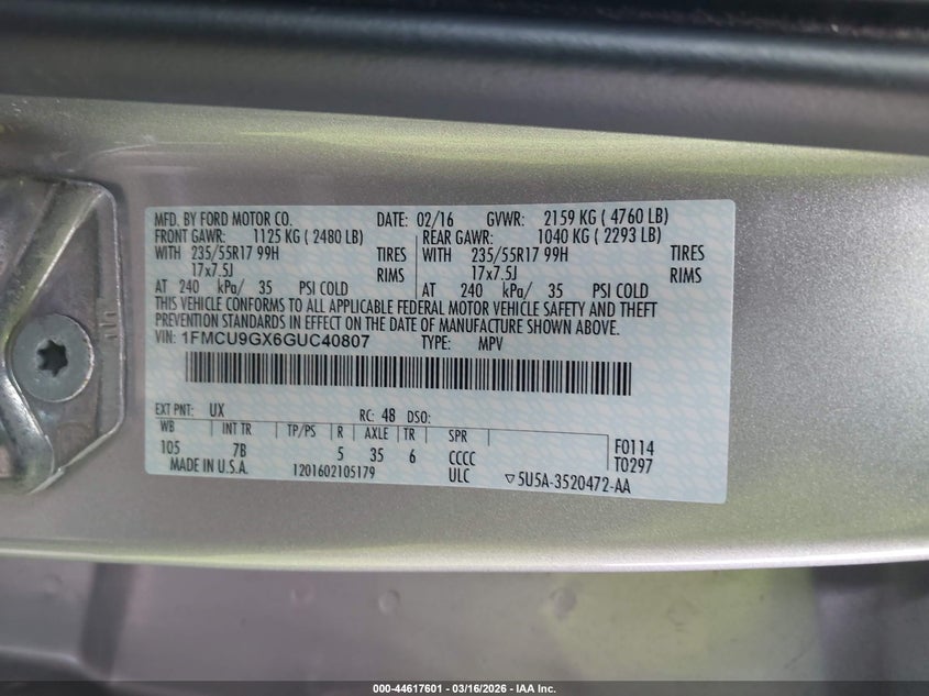 • 1FMCU9GX6GUC40807