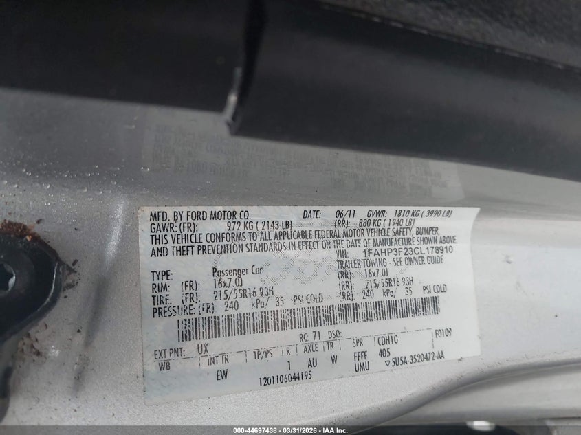 • 1FAHP3F23CL178910