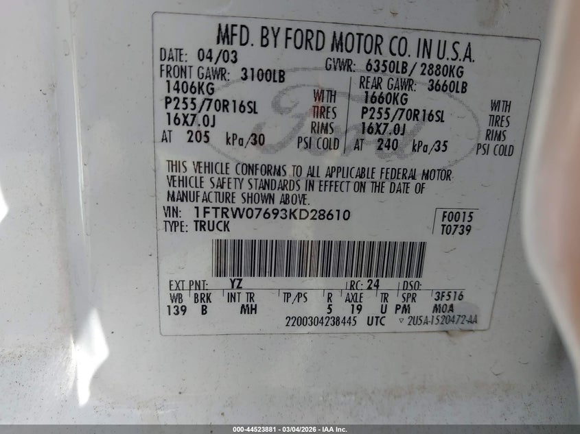 • 1FTRW07693KD28610