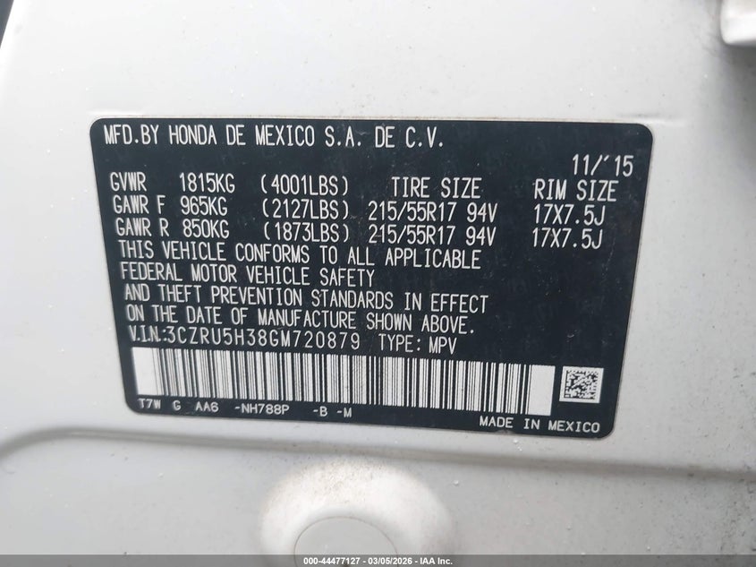 • 3CZRU5H38GM720879
