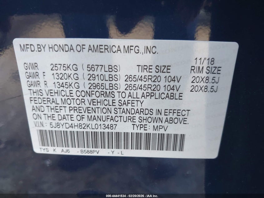 • 5J8YD4H82KL013487