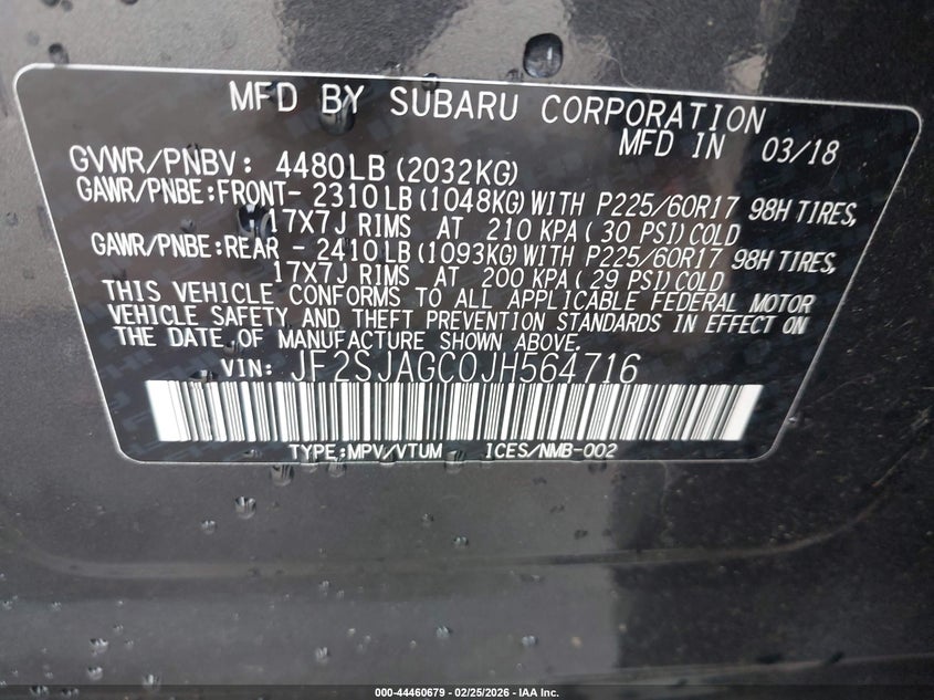 • JF2SJAGC0JH564716