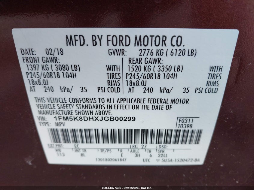 • 1FM5K8DHXJGB00299