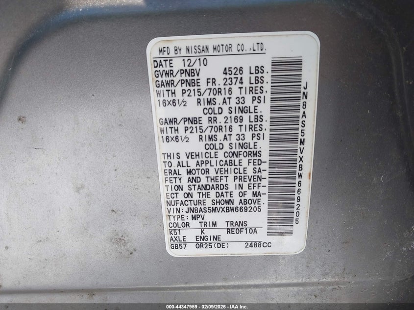 • JN8AS5MVXBW669205