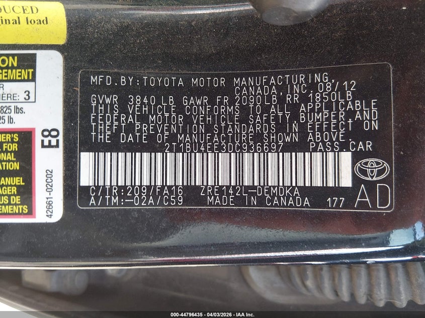 • 2T1BU4EE3DC936697