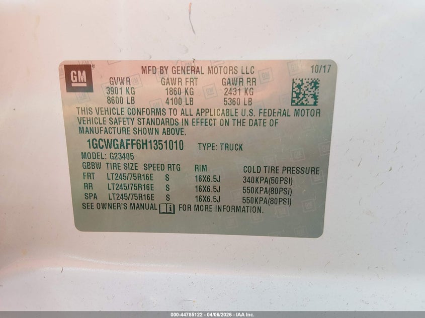 • 1GCWGAFF6H1351010