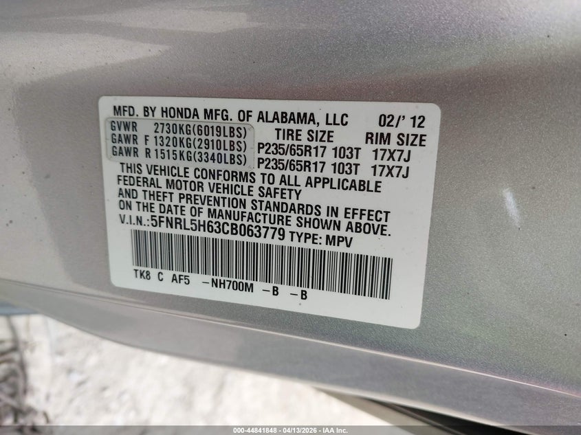 • 5FNRL5H63CB063779