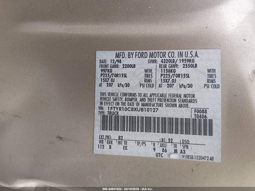 • 1FTYR10C8XUB10127