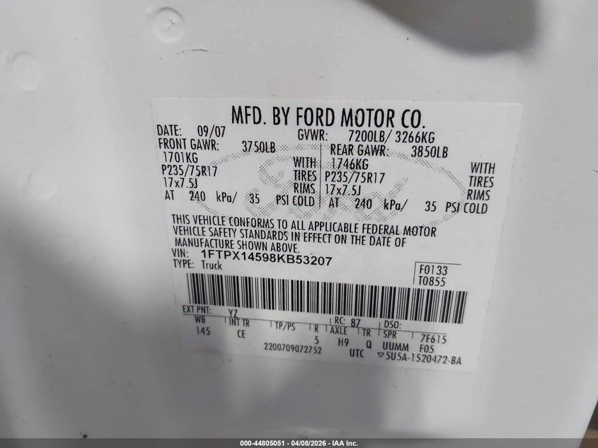 • 1FTPX14598KB53207