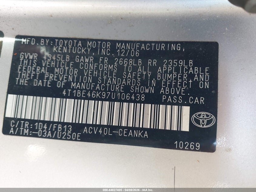 • 4T1BE46K97U106438