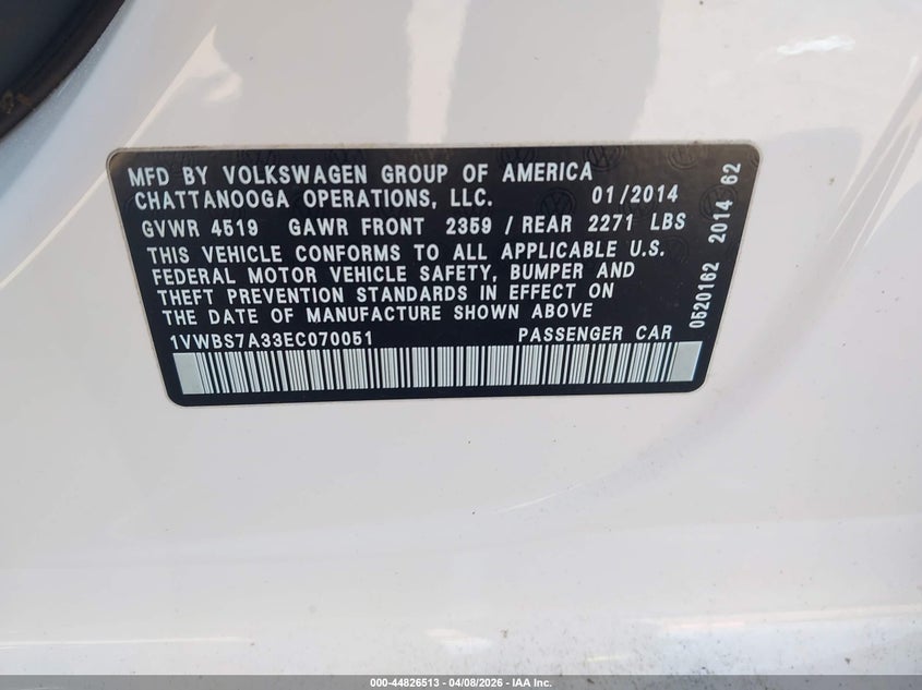• 1VWBS7A33EC070051