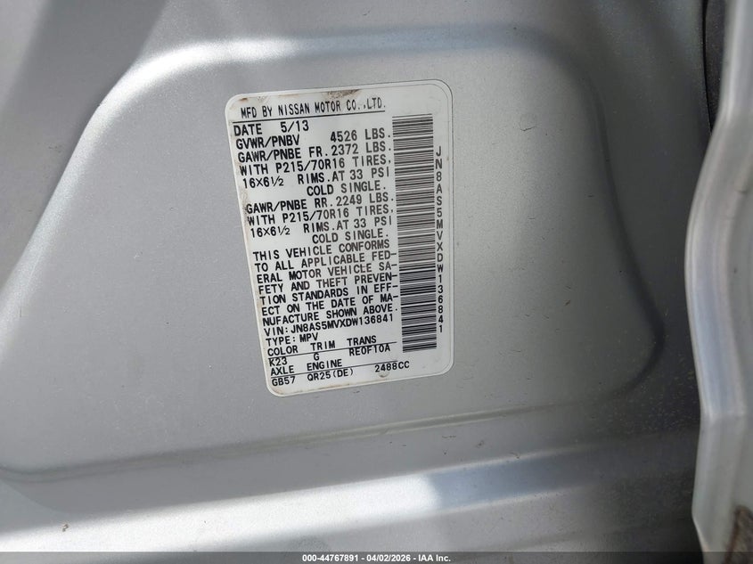 • JN8AS5MVXDW136841
