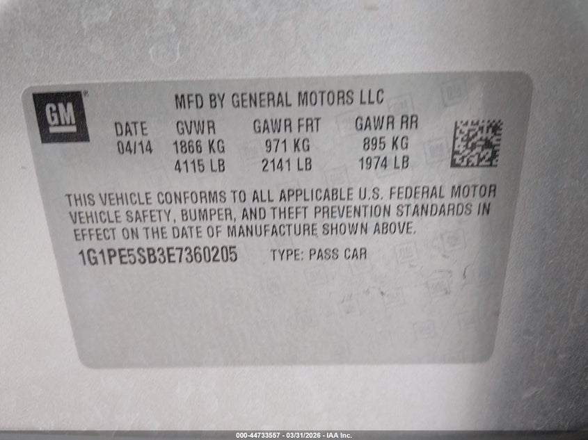 • 1G1PE5SB3E7360205