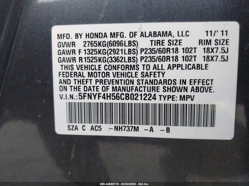 • 5FNYF4H56CB021224