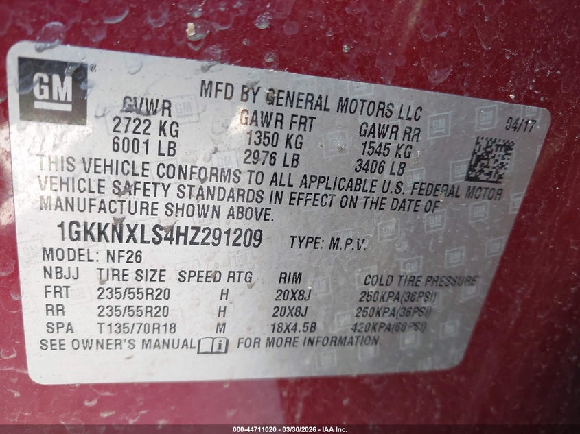 • 1GKKNXLS4HZ291209