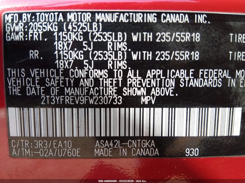 • 2T3YFREV9FW230733
